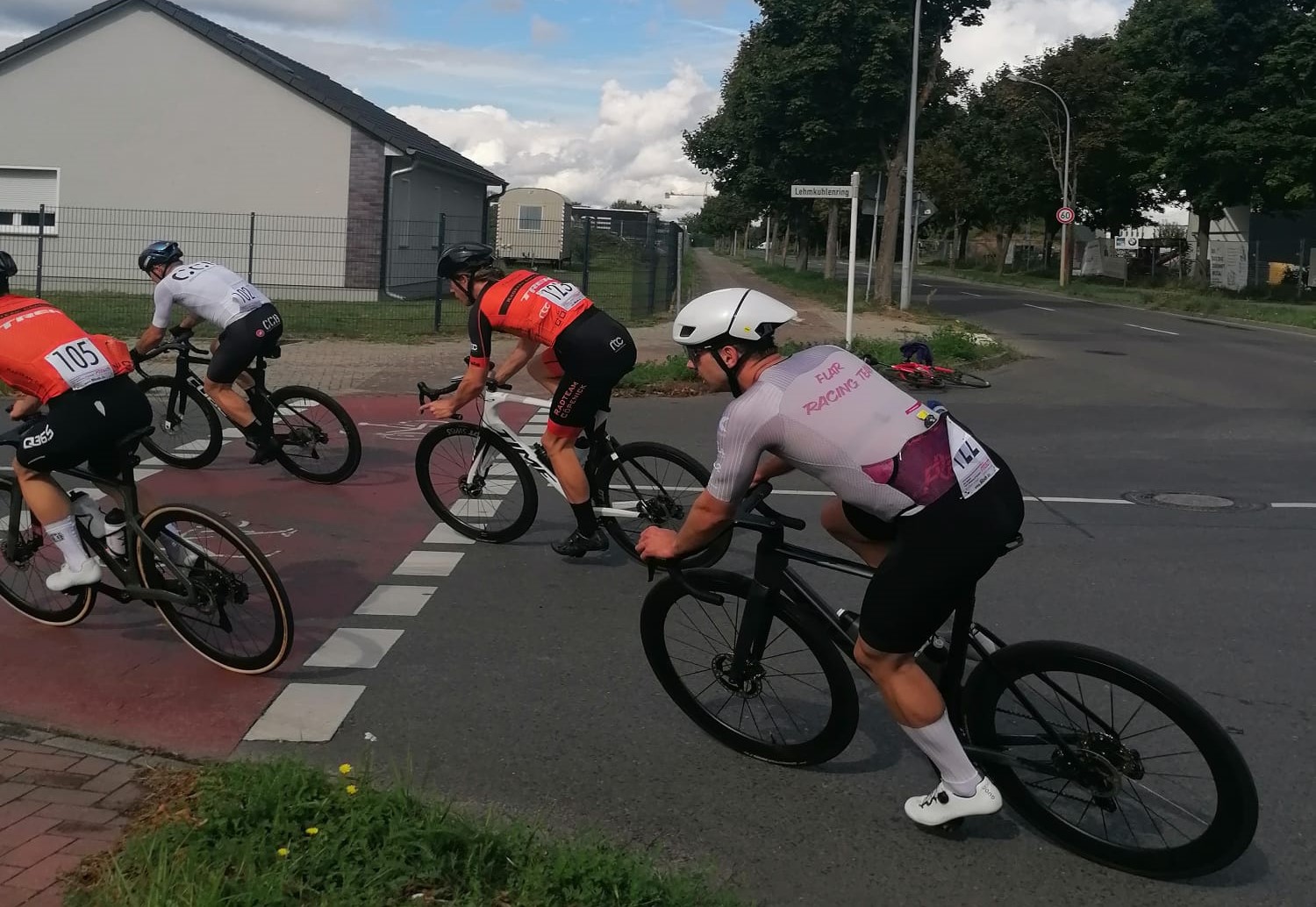 Beim nachmittäglichen Rennen der Jedermänner waren vom RTC Henri, Lukas (sein erstes Rennen dieser Art) und Andreas dabei. Trocken war es geworden, die Sonne brach durch. Die Gruppe blieb zunächst zusammen, Henri und andere neutralisierten Ausreißversuche – denn schon früh wurde deutlich, dass es in der Gruppe einige echt fähige Rouleure gab, die auf der welligen Strecke mit Wind, breiten Straßen und wenig Kurven keine Lücke bekommen durften. Und es kam, was kommen musste: über eine der Wellen setzt sich eine Fünfergruppe mit Andreas als Federführendem ab, hinten organisierte sich die gemeinsame Nachführarbeit (der vergnüglichste Teil des Rennen, echte Teamarbeit), unter deren Druck vorne noch zwei herausfielen, sodass es „Drei gegen den Rest“ hieß. Aber – am Ende war die Lücke groß – ein zwei-Klassen-Rennen geradezu. Chapeau an die Siegergruppe, wo Andreas den zweiten Platz belegte. Mit dem Feld ins Ziel kamen Henri und Lukas, mit den Beinen und dem Rennen zufrieden.